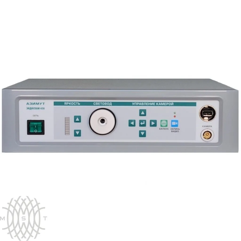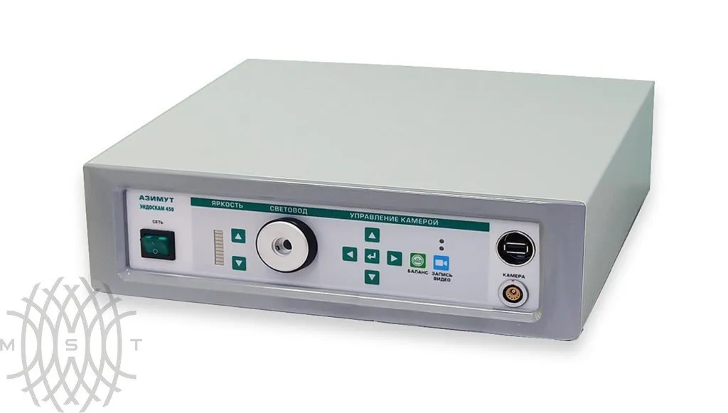 Видеокомплекс эндоскопический с цветным изображением, Эндоскам-450 (видеокамера совмещенная с осветителем LED и устройством хранения данных USB) совмещает в одном приборе осветительную систему и эндоскопическую видеокамеру, передающую изображение операционного поля на экран монитора. Видеокомплекс «Эндоскам-450» — это повышение надежности полного комплекса приборов для малоинвазивных операций и снижение его стоимости. Видеокамера выполнена по стандарту супервидео, что обеспечивает передачу тончайших оттенков цвета и четкость изображения, превышающую вещательный стандарт. В лампах встроенного светодиодного (LED) осветителя уменьшена инфракрасная (тепловая) составляющая, таким образом исключен перегрев и ожег тканей, а также торцов световодов. Видеокомплекс «Эндоскам-450» работает с любыми типами жестких эндоскопов производства НПК «АЗИМУТ» и других производителей. Данная модель имеет USB порт для подключения внешних устройств хранения данных.